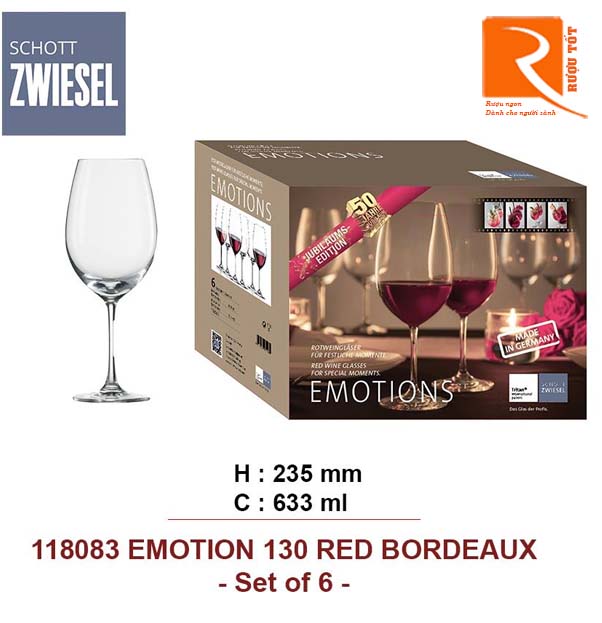 Được sản xuất bằng công nghệ titan Tritan®. Hãng này đã được cấp bằng sáng chế tạo ra các phần thân chống vỡ và chống trầy xước. Sản xuất thủ công vô cùng tinh tế. Máy rửa chén có thể an toàn để dùng rửa bộ ly Pha lên này. Một bộ ly đẹp sắc sảo, được khuyên dùng cho những chai rượu vang đỏ đúng điệu hoặc các chai rượu Pháp đến từ vùng Bordeaux.